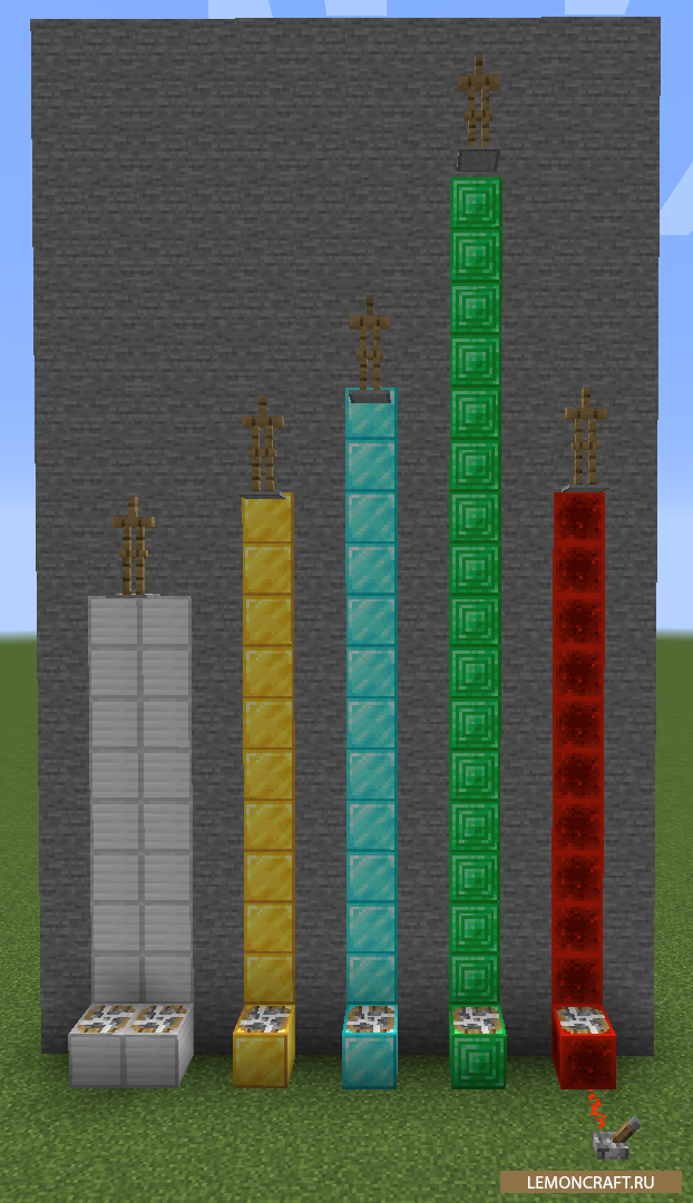 Мод на вентиляторы Fans добавляет в игру блоки-вентиляторы, которые вы можете использовать для поддержки в воздухе различных предметов, мобов и игроков. В зависимости от материала из которого изготовлен вентилятор будет зависеть высота подъема, а если используется два вентилятора то их сила подъема складывается.